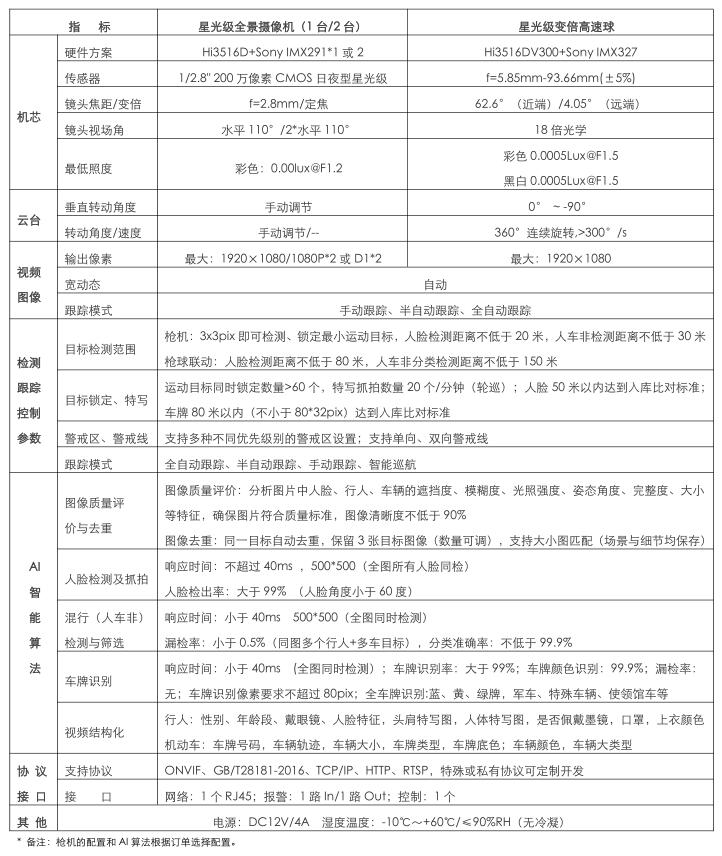 ? 星光級(jí)高清全景攝像機(jī)+18 倍光學(xué)變焦智能 AI 一體化高速球;
