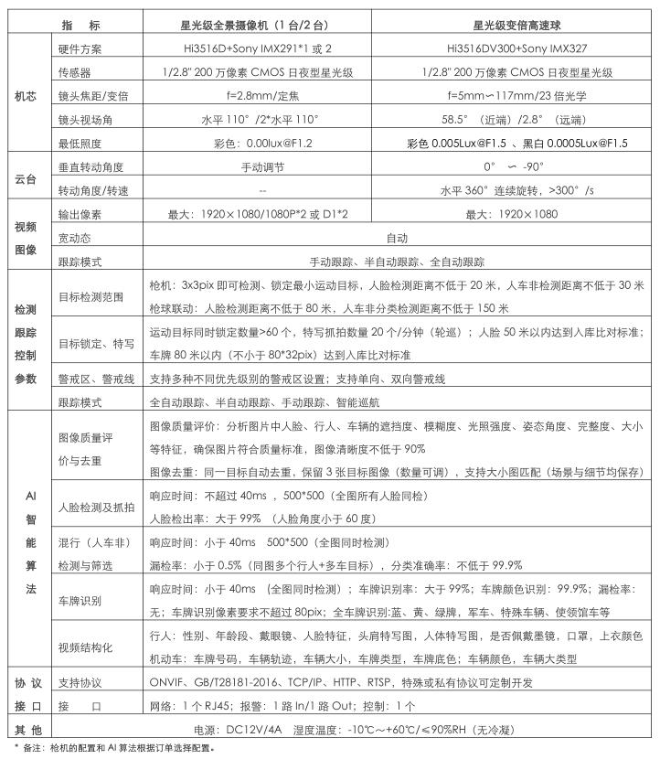 ? 星光級(jí)高清全景攝像機(jī)+23 倍光學(xué)變焦智能 AI 一體化高速球;